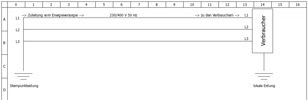Im TN-System ist der Neutralpunkt der Stromquelle (meist der Sternpunkt des Transformators) direkt mit Erde verbunden. Der Schutzleiter wird daraus abgeleitet.