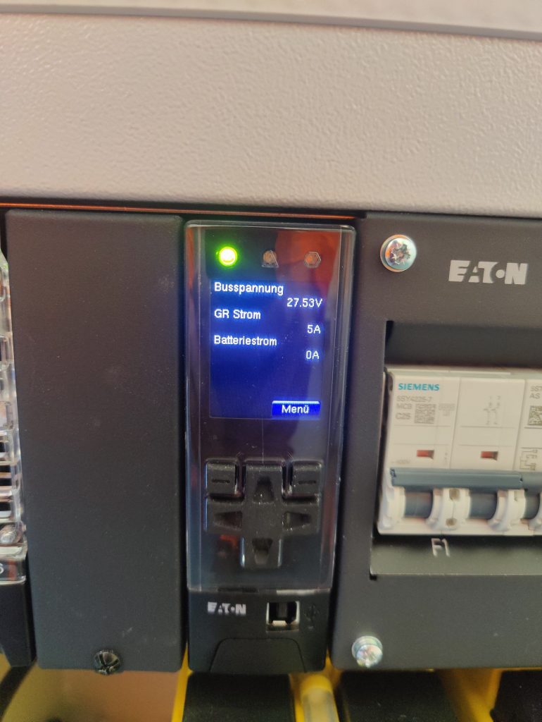 Im Rahmen der DC-gestützten unterbrechungsfreien Stromversorgung (DC-USV) kommt ein redundanter Gleichrichteraufbau zum Einsatz. Hierbei wurden zwei Gleichrichtermodule vom Typ EATON APR24-3G verwendet. Diese Schaltnetzteile sind auf eine Ausgangsspannung von 24 V DC ausgelegt und können im Parallelbetrieb arbeiten, um eine Redundanz oder Lastaufteilung zu gewährleisten. Schon ein Gleichrichtermodul kann bis zu 50 Ampere bereitstellen.